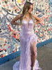 Experience the epitome of elegance with "Nyra". a dress crafted for those who dare to shine. Bathed in the serene hues of sky blue and lilac. this sheath-style gown. made from luxurious sequin fabric. promises a night drenched in starlight. The strapless design elegantly highlights the collarbone and shoulders. leading to a sweetheart neckline that flatters any décolletage. Every step reveals a seductive side slit. adorned with soft. ethereal feathers. exuding a touch of whimsy to this radiant attire. The zipper back ensures a seamless fit. making sure you remain comfortable as you own the dance floor.