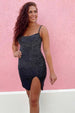 Dive into a world of glamour with Kerstin. an embodiment of sophistication designed for the ultimate homecoming experience. The sheath silhouette. effortlessly molded from beaded stretch-satin fabric. promises a flattering fit while shimmering with every step. The delicate spaghetti-strap neckline frames the collarbone. leading the gaze down to a sultry front slit - a bold statement of modern femininity. Ensuring the perfect fit. a lace-up back cinches the waist while allowing for adjustable comfort. Wear Kerstin and shine with unmatched elegance.