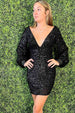 Unveil your inner temptress with "Zuleika." the homecoming dress designed for women who dare to shine. Cut in a sophisticated sheath style from black sequin fabric. this spellbinding dress guarantees a grand entrance. Its plunging V neckline captivates attention. turning heads while perfectly balancing the sensuous allure of your silhouette. But the true masterpiece of this ensemble lies in its long puffy sleeves. They are not just sleeves; they are your statement. your armor of dazzling audacity. With a zipper back for a seamless finish. this dress is the epitome of daring elegance and opulent grace. When you step out in "Zuleika." you don't just attend the event; you become the event.