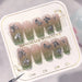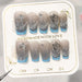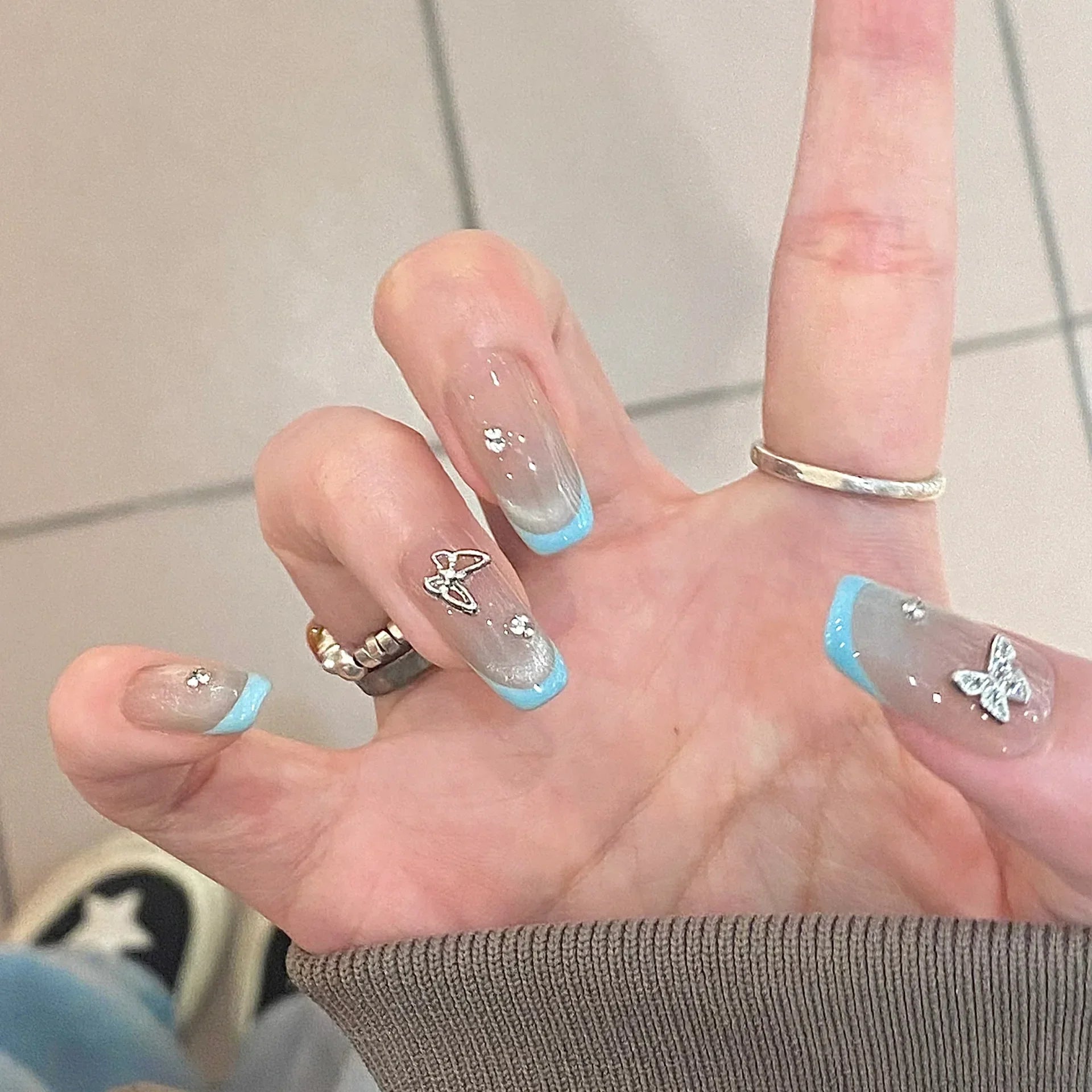 10pcs Blue Edge French Tips Press On Nails Handmade Grey Cat's Eye False Nail With Metal Butterfly Decor Short Reusable Manicure