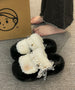 2023 New Khaki Nail Bead Bow Platform Teddy Slide Sandals