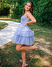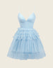 Dance the night away in Layla. our A-Line Deep V Neck Tiered Short Homecoming Dress. Its playful A-line silhouette flatters every figure. while the deep V-neckline adds a hint of allure. Designed for those who desire to make a stylish statement. this stunning dress guarantees all eyes on you. Dress Layla features the glitter tulle fabric that sparkles in the light. enhancing your radiance. The spaghetti-strap deep V neckline complements the dress's youthful and fresh design. The tiered skirt. adorned with pleats and ruffles. adds movement. ensuring you'll turn heads as you dance.
