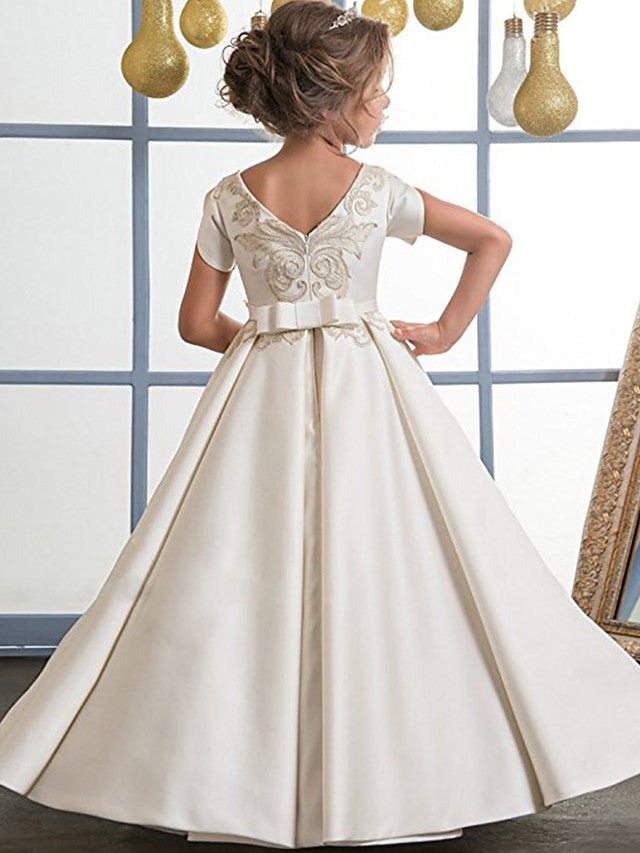 This A-Line Jewel Neck Satin Flower Girl Dress offers a classic. timeless look. perfect for a wedding. birthday. or pageant. The satin fabric is both durable and comfortable. ensuring a comfortable fit and lasting style. The neckline is designed with a sparkling jewel for a lovely touch.