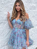 Introducing the Ivana A-line Sweetheart Printed Homecoming Dress – a romantic vision of elegance and charm. This captivating dress features a whimsical printed tulle fabric. and the graceful A-line silhouette combines with the sweetheart neckline and off-the-shoulder short puffy sleeves. enhancing the wearer's femininity. The dress's illusion corset bodice hugs the figure with sophistication. while playful ruffles add a touch of whimsy. Together. these elements create a gown that's both timeless and on-trend. Shop dress Ivana Now!