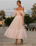 Step into the room and captivate all eyes with our Nova dress. With a flattering A-line silhouette. it embodies both grace and charm. The delicate dotted tulle fabric adds a touch of magic. ensuring a fairy-tale entrance to your homecoming event. The sweetheart neckline flatters your figure while the off-the-shoulder straps add a hint of romantic allure. Adorned with pleats on the bodice and cascading ruffles on the skirt. Nova is an artwork in itself.