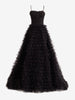 Bask in the glamorous shimmer of the "Jordan". a stunning A-line tiered sequins tulle long prom dress. Crafted from luxurious tulle fabric and beautifully adorned with lace appliques and sequins. the Jordan dress will leave a trail of awe-struck admirers. Its straight-across neckline flatters all body types while the floor-length skirt with a court train adds a dash of royal flair to your prom night. The tiered ruffles add an extra layer of sophistication and a contemporary twist to the classic A-line silhouette. The unexpected slit adds a sultry touch to this enchanting ensemble. making it an ideal choice for the modern. fashion-forward prom-goer.