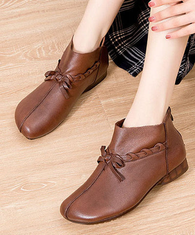 Boutique Bow Cowhide Leather Boots Warm Fleece Ankle Boots