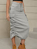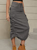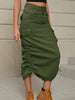 Khaki Buttoned Drawstring Pockets Solid Color Split-Side A-Line Skirts Bottoms
