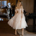 Step into a fairy tale with Regina. our enchanting A-line. tea-length prom dress in a dreamy shade of pink. Crafted from soft tulle fabric that floats as you move. this dress captures the very essence of romantic allure. The sweetheart neckline perfectly complements the off-the-shoulder straps. lending an air of vintage sophistication to your look. Elegant pleats and ruffles grace the skirt. adding layers of whimsical charm. To tie it all together. a lace-up back ensures a fit as unique as you are. Regina is more than a dress; it's a statement of youthful elegance and grace. Don't just attend the prom; own it in a dress that makes you feel like a princess from a timeless tale.