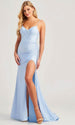 Undoubtedly. the presence of your beauty will heighten the glamour of the stage when graced in the Colette By Daphne CL5111 creation. Fashioned in a chic stretch spandex jersey silhouette. this fashionable gown features a sweetheart neckline complemented by a corset bodice. Adorned with spaghetti straps and a bra-style cutout back. the ruched top skirt adds a textured dimension to this gown. culminating in a high front slit and a sweep train. The Colette By Daphne CL5111 masterpiece emanates a captivating elegance as its focal point Models are wearing the Black. Red. Light Blue. Turquoise. and Plum colors.