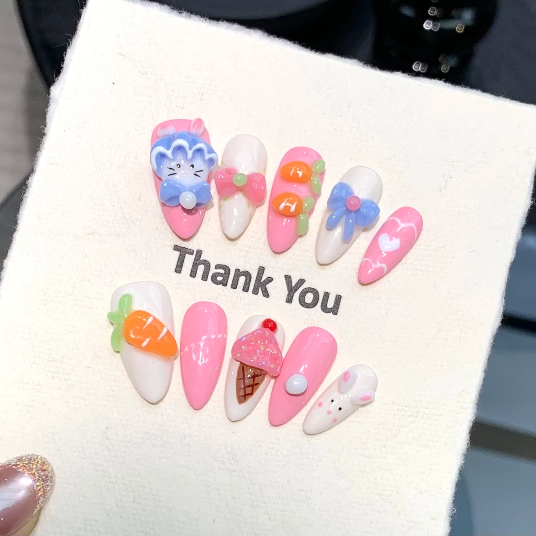 x10 handmade press-on nails, Adhesive tabs for secure wear, A mini nail file and cuticle stick for a perfect fit, A clear storage case to keep your nails organised and ready to use!