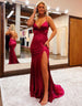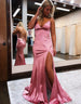 Introducing "Allie." a garment that seamlessly merges classic elegance with a dash of contemporary verve. Let every step unveil a daring secret with the dress's enticing slit. masterfully paired with the gentle caress of premium satin. guiding the eye along a journey of sleek mermaid silhouette. to the sophisticated sweep train. Your form is gracefully outlined by the deliberate stitch and the soft embrace of the v-neckline. while spaghetti straps provide a delicate frame. allowing your confidence to be the star of the night. The lace-up back intricately binds function and style. ensuring you are wrapped in effortless comfort as you shimmer through the night.