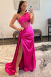 Meet Valerie. the embodiment of elegance and sensuality in one head-turning sheath prom dress. Crafted from luxurious satin. this floor-length gown in vibrant shades of fuchsia. red. black. and blue screams opulence. The one-shoulder neckline adds a sultry touch. while the side slit provides a playful peek at your legs. Accentuating your curves is an illusion corset bodice. adorned with intricate pleats that cascade into a sweeping train. A concealed zipper at the back ensures a snug fit. Make no mistake. in Valerie. you'll be the showstopper.