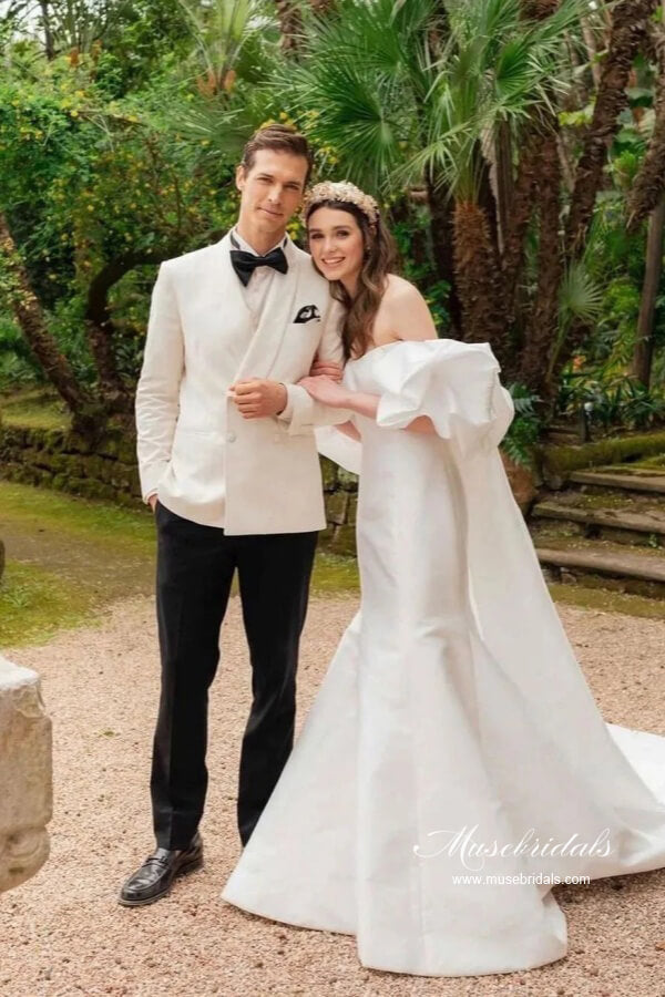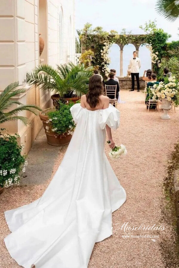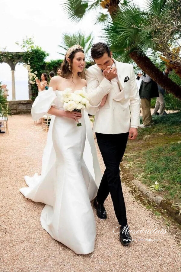 Gorgeous Satin Mermaid Off Shoulder Chapel Train Wedding Dresses.
