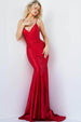 Navigate the ballroom with poise and sultry flair in this sleekly rendered Jovani 23010 creation. Festooned with glimmering rhinestone details cascading the sleekly tailored silhouette. this exceptional piece hung from spaghetti straps down to a deep v-neckline. Perfectly styled with a nipped waist and a sexy open back with a lace up design that ties stunningly. Donning rhinestone adornments. the mermaid skirt sculpts and flutters into a sweeping finish. Bask under the shimmering limelight while parading this Jovani masterpiece. Models are pictured wearing the Light Blue. Red. and Royal colors.
