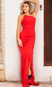 Be strikingly gorgeous in Jovani 26166. This dress combines the best of both worlds with a slightly asymmetric off-shoulder design that exudes modern elegance. and the sleeveless silhouette highlights your shoulders and arms while the high slit adds a captivating touch. allowing you to showcase your legs with every step. The ruched details on this Jovani 26166 provide a figure-flattering effect that accentuates your natural curves. ensuring you feel confident and beautiful. Model is wearing Red color.