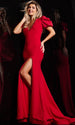 Feel like a queen at your special event in this Jovani 37272 masterpiece. This gown elegantly highlights your inherent charm. featuring a beaded trim that adds the right amount of sparkle. Additionally. it displays a deep v-neckline. short puff sleeves. and an enticing open back. The skirt godets provide dimension to create the appearance of a mermaid silhouette. It culminates in a stunning thigh-high leg slit and sweeping train. Orchestrate your moment to stand out in this Jovani 37272 Creation. Model is wearing the Red color.