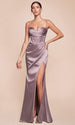 Details: | Spaghetti Straps. Corset Bodice. Lace Up Back. High Slit. Sweep Train |