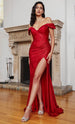 Resonate a sophisticated style at your fabulous soiree in this Ladivine CC2212 creation. Opulently sculpted with tailoring lines on a glitter ornate silhouette. this stunner features a corset bodice with a basque waist on an off shoulder design. Draping with a cascading accents. the skirt parts with a sexy high slit as it sculpts and falls into a floor sweeping denouement. Encapsulate the glam as you grace the red carpet in this iridescent Ladivine masterpiece. Models are wearing the Black. Emerald. Lapis Blue. Red. and Royal colors.
