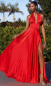 Release your inner fashionista with this Ladivine CD323 masterpiece. Designed to make heads turn. this sleeveless gown has a halter neckline and convertible straps that transform it into endless amazing styles. The wide waistband effortlessly emphasizes your curves. while the open back reveals just enough skin. The A-line silhouette of the wrap-style skirt is beautifully molded till it reaches the floor. opening a thigh-high slit to provide sultry leg exposure. Be in the spotlight wearing this Ladivine CD323 gown. Models are wearing Black. Emerald. Lt Coral. Red. and Sage colors.