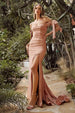 Slip into this absolutely eye-catching LaDivine CD943 outfit to transform yourself into a head-turning beauty. This bright formal evening gown has a form-fitting style that will show off your statuesque physique. as well as a beautiful sweetheart neckline with an off-the-shoulder bow strap. The tight bodice and back are textured with fine ruching. and the full-length skirt has a thigh-high leg split. finished with a horsehair hem sweep train In this LaDivine CD943 gown. exude the confidence of a queen. Plus size style CD943C is also available. The models are wearing Mauve. Red. Emerald. Royal. Cyan. Dessert. Rose. and Dusty Blue.