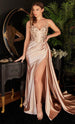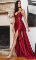Details: | Spaghetti Straps. Bustier Bodice. Embroidered Accents. High Slit. Sash Cascade. Scoop Back. Sweep Train |
