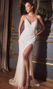 Radiate glamour and allure in Ladivine CH225W. a stunning fitted sequin dress that's destined to be the star of any event. This dress boasts a fitted silhouette adorned with dazzling sequins that delicately catch and reflect the light. ensuring all eyes are on you. The gathered waistline adds a touch of flair and detail. while a tasteful leg slit allows you to show off just the right amount of skin. The dress's irresistible style features an open lace-up corset back and a sultry v-neckline. making you look and feel sexy and glamorous. Step into the spotlight and make a statement in Ladivine CH225W. Model is wearing Off White color.