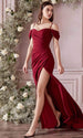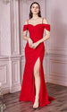 Bask in the timeless glamour of this Ladivine KV1057 design. This gown has a surplice bodice and a pleat ornate off shoulder design with a sweetheart notch detail. The trumpet skirt has a high slit and a train that is stringed with spaghetti straps and cold shoulder details. Take care of your attire. and your confidence will take care of the rest. Make an extraordinary statement when you walk in this classy Ladivine KV1057 masterpiece. Models are wearing Black. Burgundy. Dusty Rose. Emerald. Light Blue. Powder Blue. Red. Royal colors.