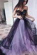 Lilac Black Tulle A-line Sweetheart Prom Dresses With Lace Appliques. MP730