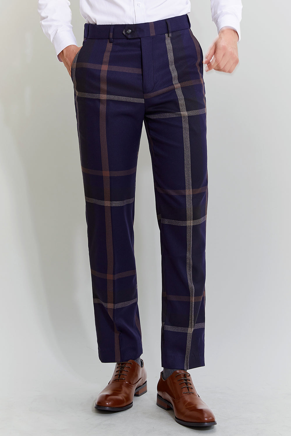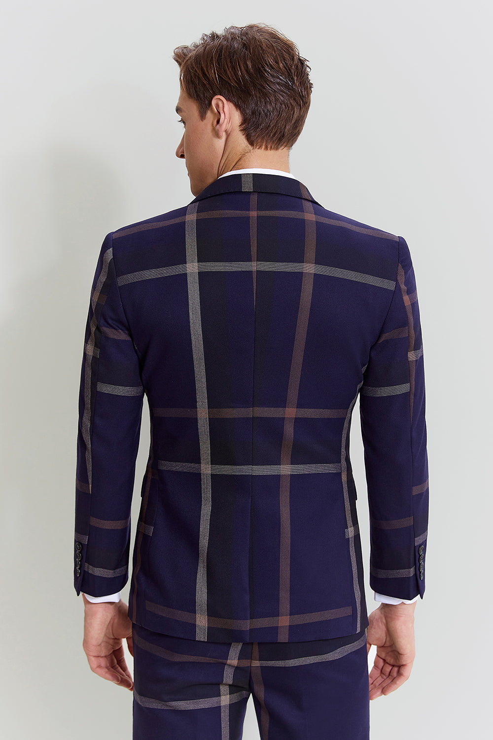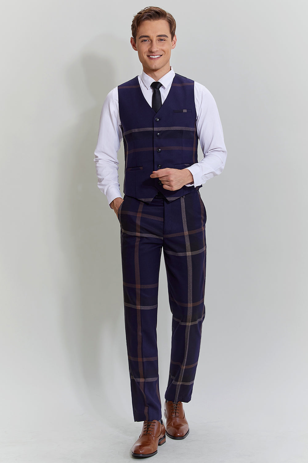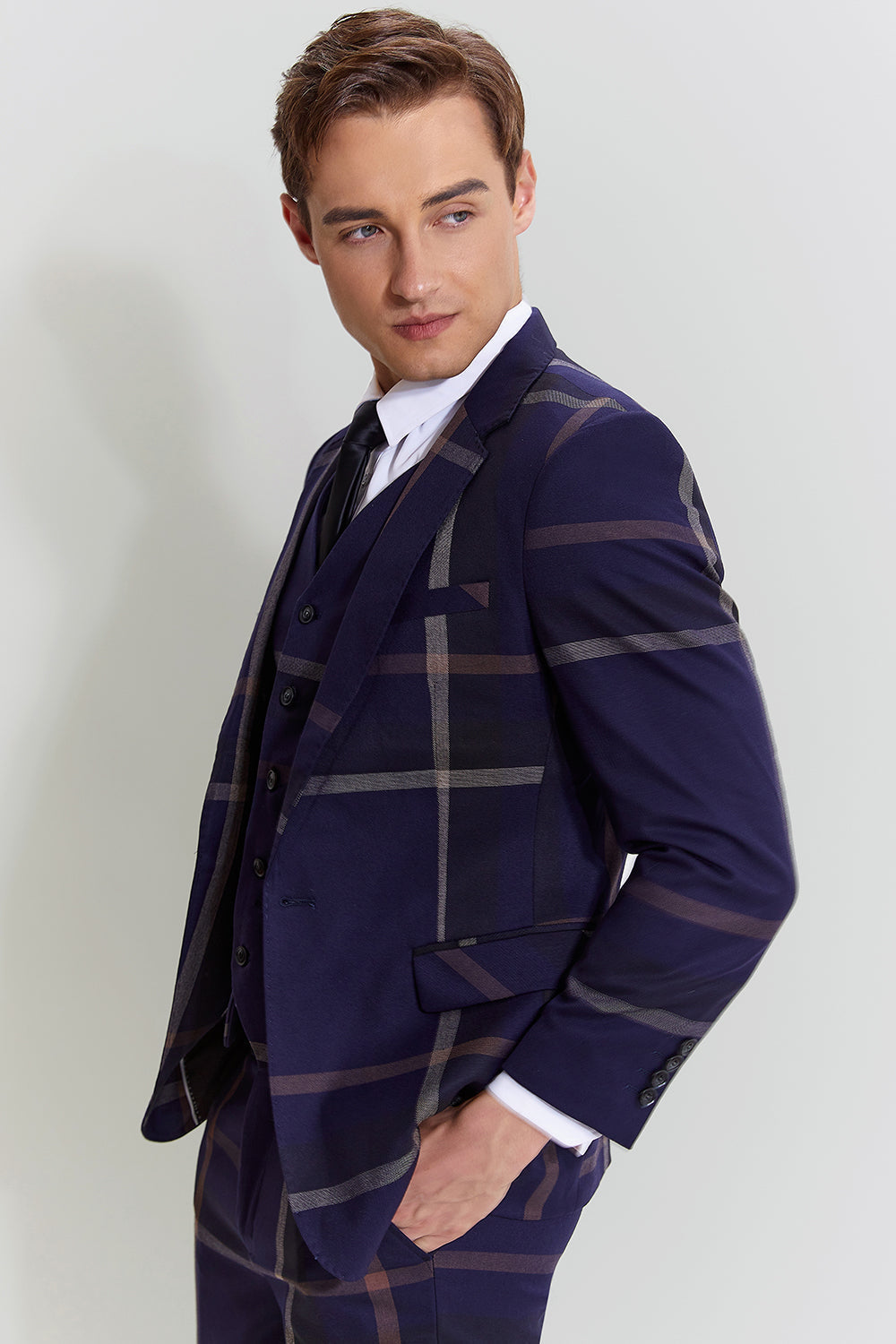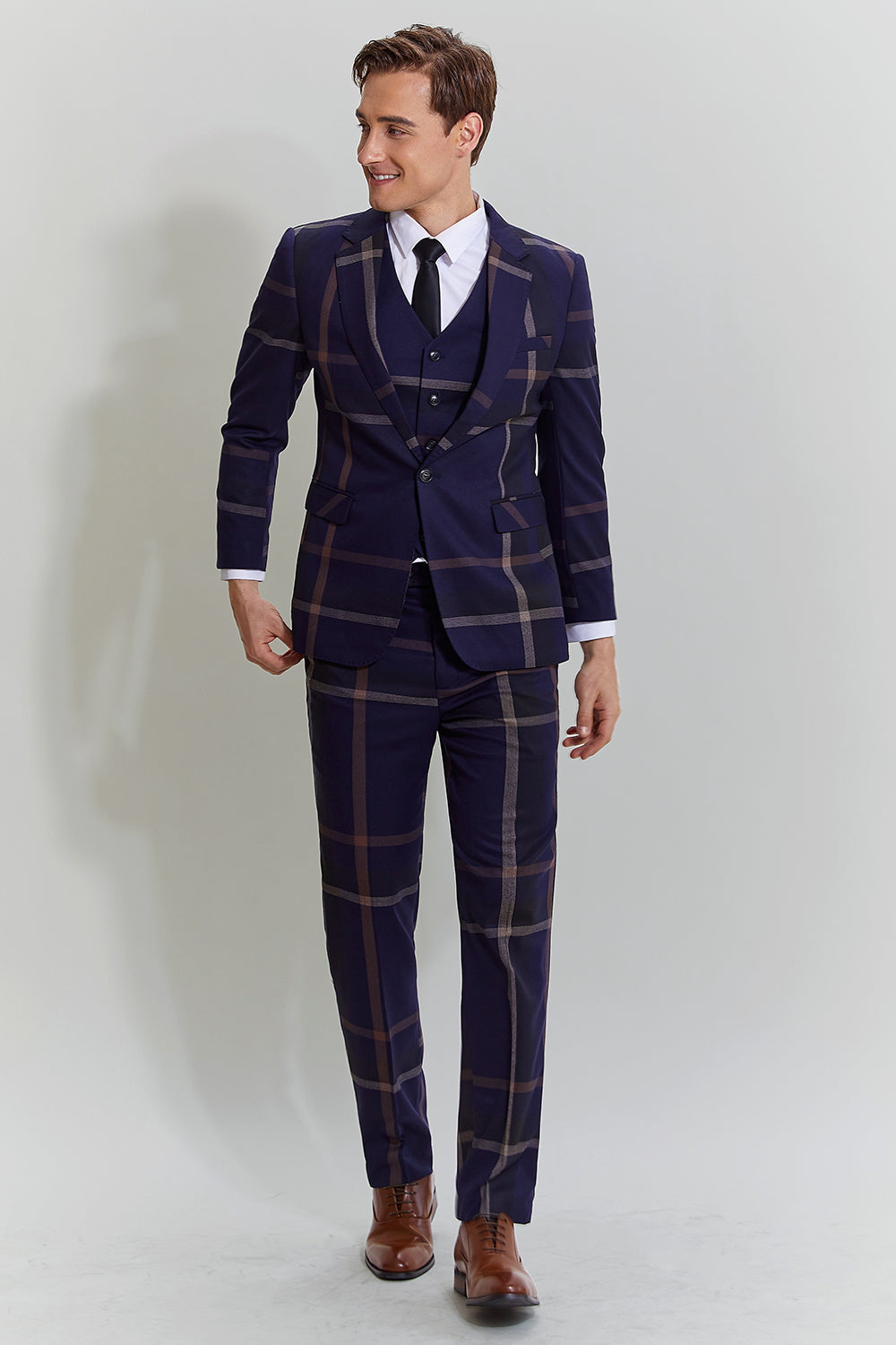 Men's 3 Piece One Button Navy Plaid Tuxedo