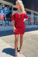 Mesmerizing in a gradient of different shades. Verity isn't just a dress; it's a mood. Dappled in radiant sequins. this dress is reminiscent of the night sky's brilliance. illuminating the night and your presence. The bodycon silhouette accentuates your form. while the off-the-shoulder short sleeves. coupled with a charming sweetheart neckline. create a sophisticated allure that's irresistible. Perfect for homecoming or a dazzling night out. Verity ensures that you don't just arrive; you make an entrance.