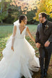 Organza V-neck Ball Gown Wedding Dress With Ruffles Beading Bridal Gown.
