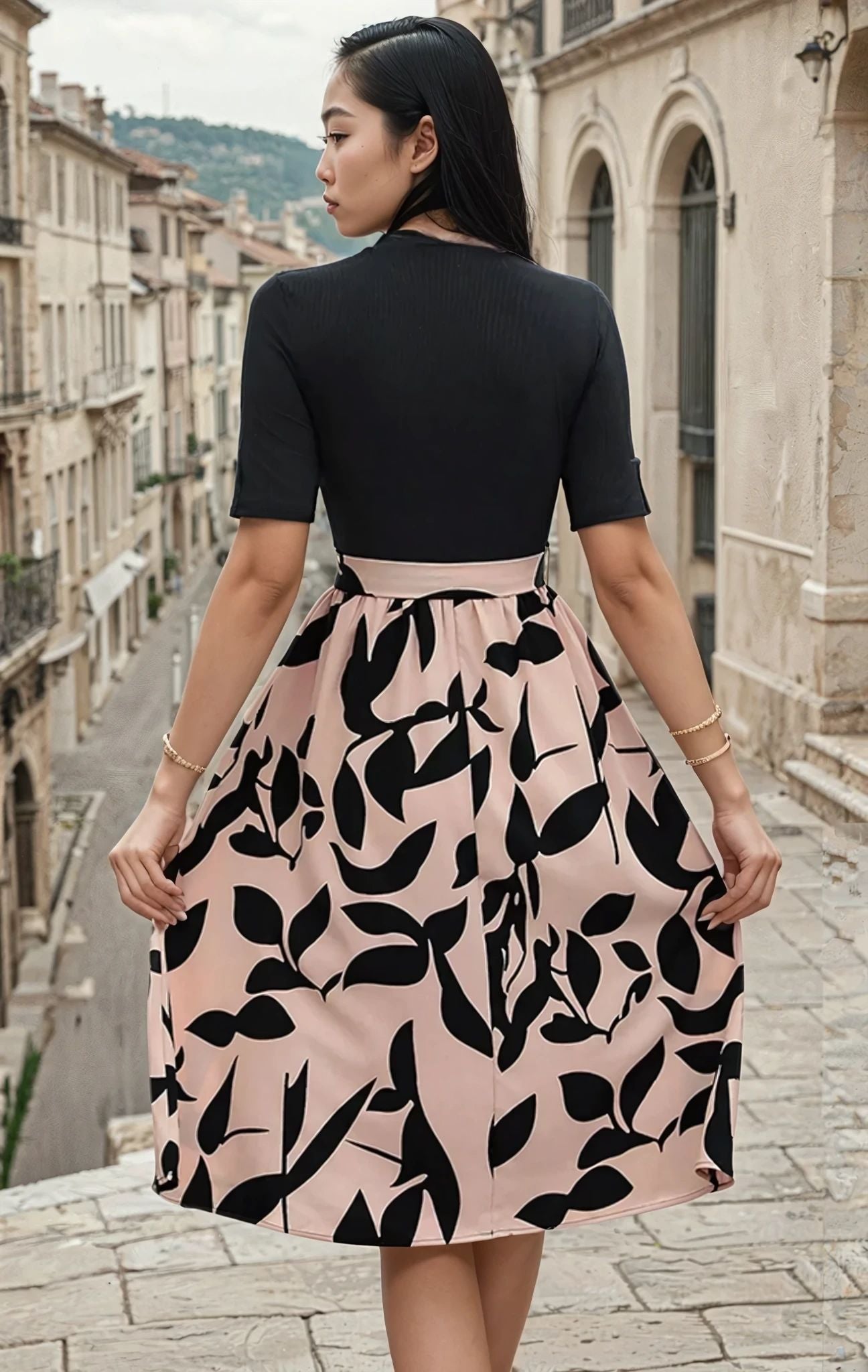 Multi Occasional Short Sleeve Dress. Designed for the professional setting. this dress features a classy mock neck and practical short sleeves. Versatile enough to be worn for lunch or at a resort.