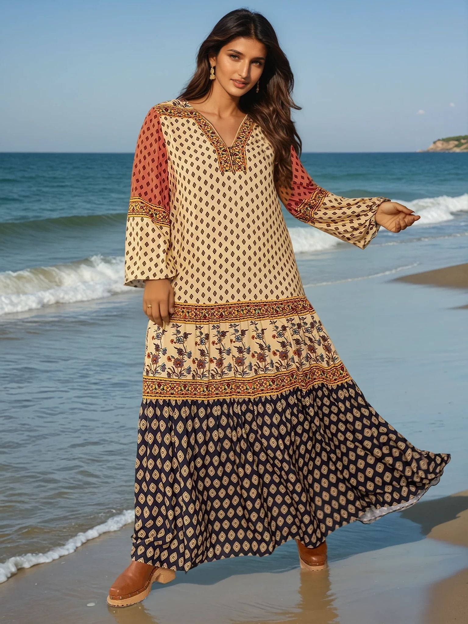 Get ready for the beach with our Plus Size Boho Long Sleeve Maxi Resort Dress. Perfect for curves and plus size ladies. this maxi dress is both stylish and comfortable. With its long sleeves and boho design. it's the perfect choice for any resort or beach vacation.