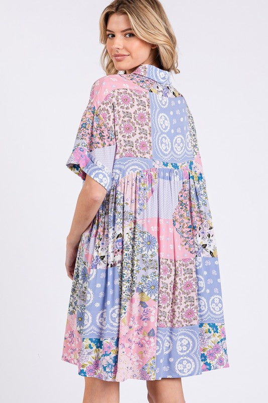 The Floral Collared Neck Half Sleeve Mini Shirt Dress is a charming and feminine piece. The floral print adds a touch of whimsy and elegance to the dress. The collared neckline gives a polished and classic look. With half sleeves and a mini length. this dress is perfect for a stylish and breezy outfit. suitable for various daytime occasions or casual events.