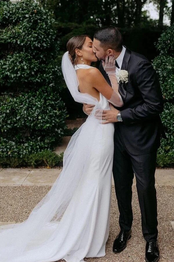 Satin Mermaid Halter Neck Backless Modest Simple Wedding Dresses.