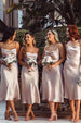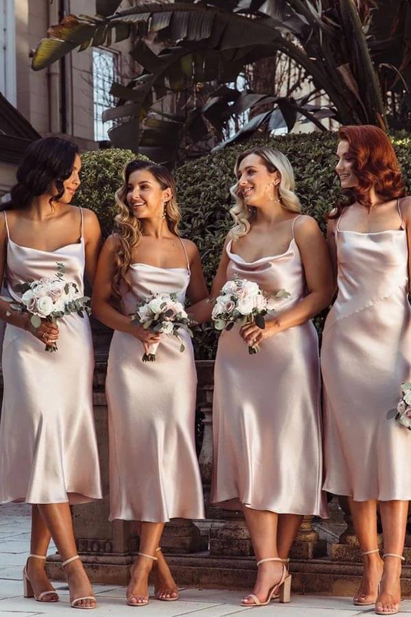 Sheath Silk Satin Cowl Neck Midi Bridesmaid Dresses. Wedding Party Dress. MBD199
