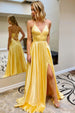 Step into the spotlight with "Rosie" – an epitome of radiant sophistication. This A-line satin prom dress. accentuated with a V-neckline. fuses classic elegance and modern flair. Rosie's slender spaghetti straps gracefully descend to showcase a décolletage that speaks volumes of subtle charm. Glistening sequins dance upon the fabric. reflecting light with every step. while the side slit hints at a playful yet refined allure. The lustrous satin. available in a palette from green to royal blue. cascades down in a sweep-brush train. adding a dramatic flair perfect for that unforgettable prom night entrance. With Rosie's lace-up back. get ready to experience a fit that feels tailor-made. emphasizing your silhouette in all the right places.