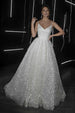 Sparkly A-line V-neck Spaghetti Straps Wedding Dresses. Bridal Gowns.