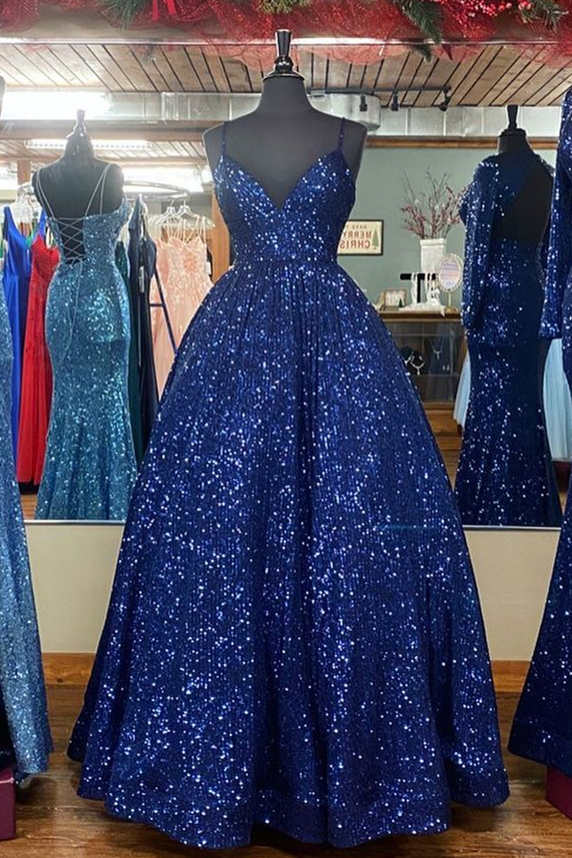 This enchanting dress is designed to an A-Line silhouette offers a classic and universally flattering fit. gracefully flowing from the bodice to the floor. The sequin fabric adds a touch of sparkle. ensuring you shine with every step. This dress is available in a range of captivating colors including Pink. Sky Blue. Navy Blue. and Champagne that lets you choose the hue that best reflects your personality. The lace-up back ensures a customizable fit. allowing you to adjust the dress for a perfect silhouette.
