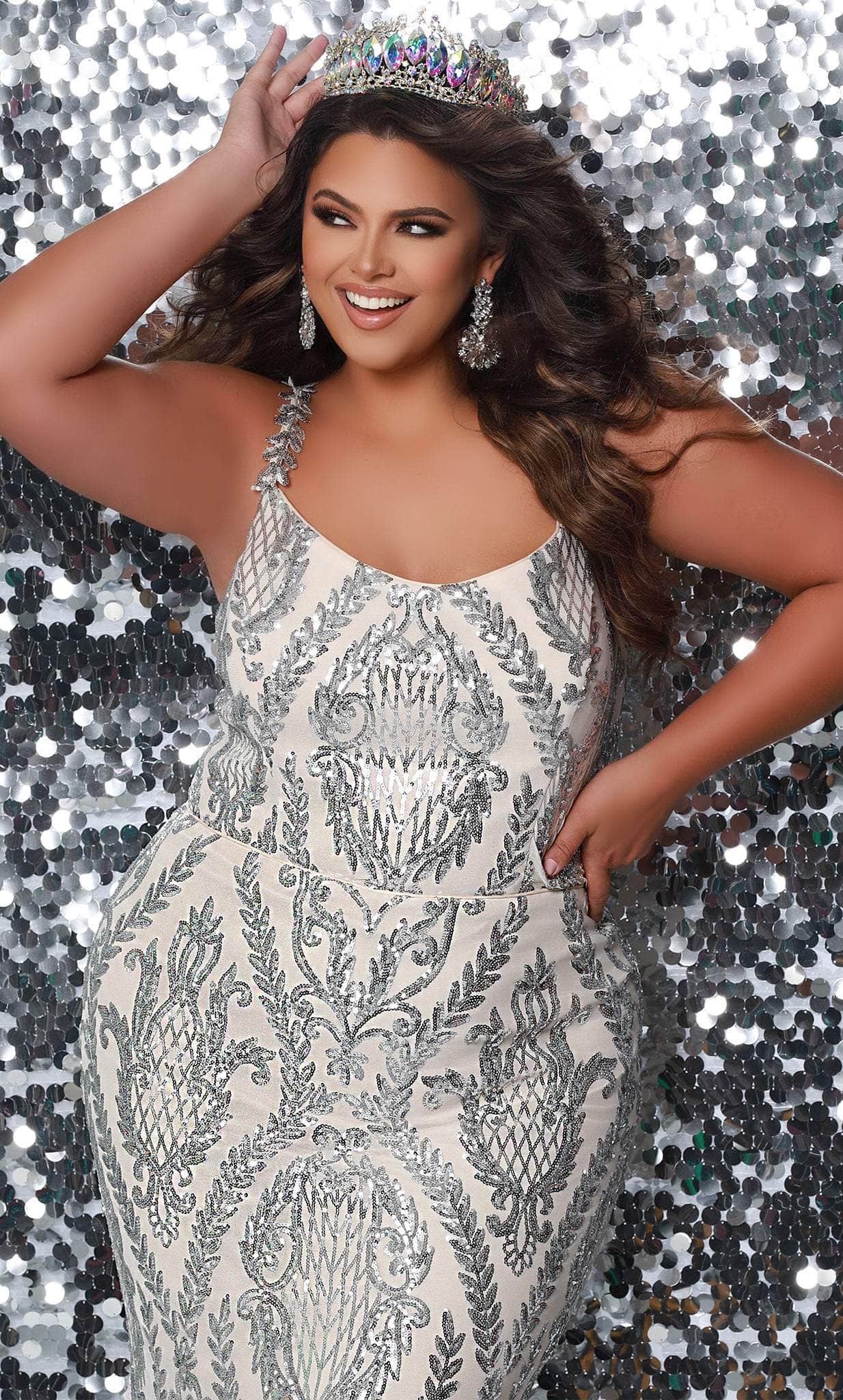 Evening DressesSurround yourself with sparkle of glamour when you walk in this Sydney's Closet SC7332 masterpiece. Adorned with an eye-catching pattern of sequins throughout the fitted bodice. this ensemble is sure to turn heads at your next event. It shows off a matching scoop neckline and mid-open scoop back supported by laced thin straps. The skirt has a sheath silhouette that flutters gracefully in full length hem and sweeping train. Flatter your shape with a sculpted gown from Sydney's Closet SC7332. Models are wearing the Black. Forest. Metallic Nude. Red and Royal colors.