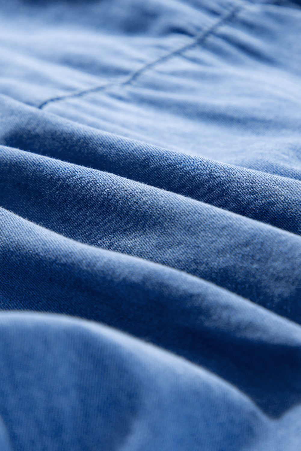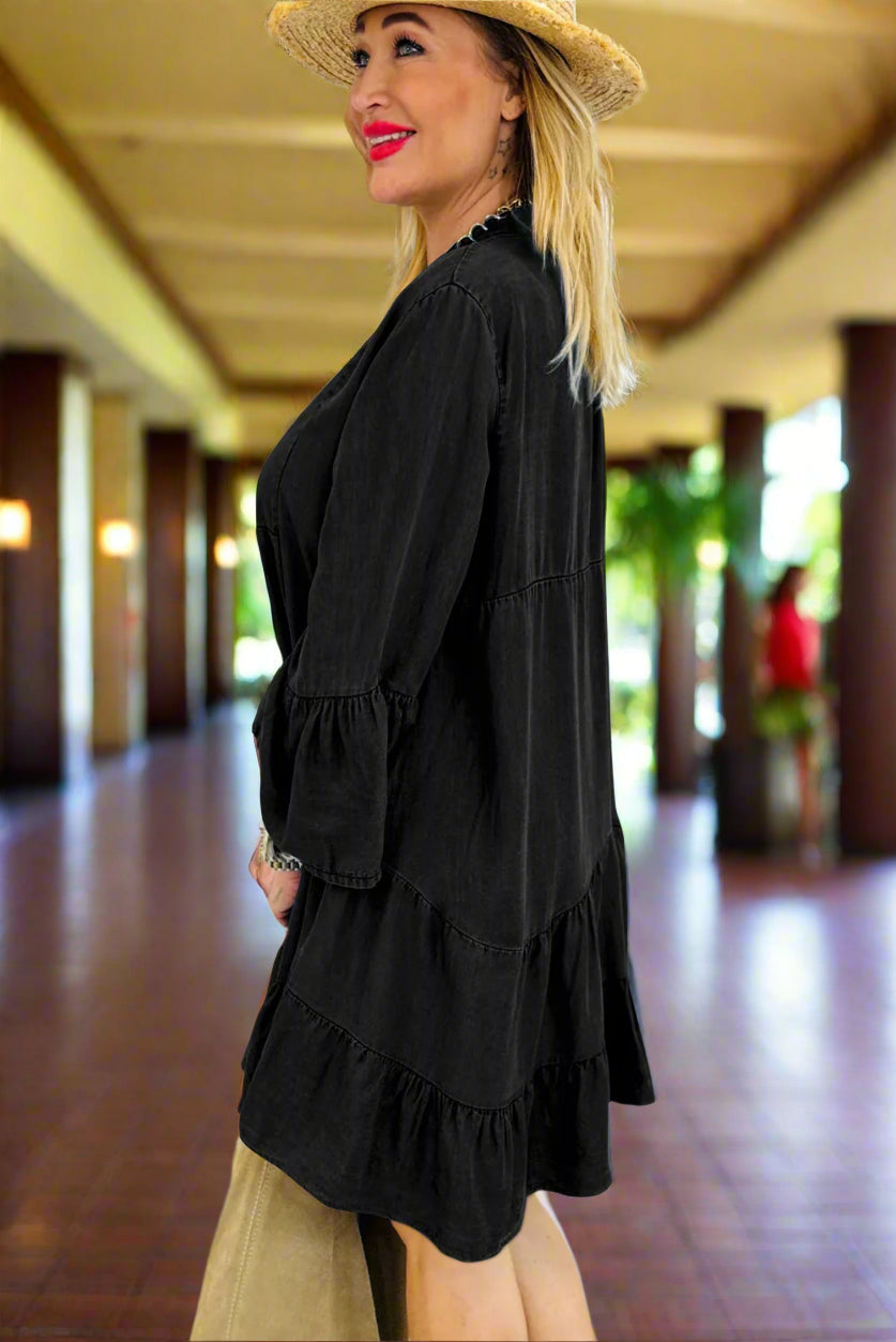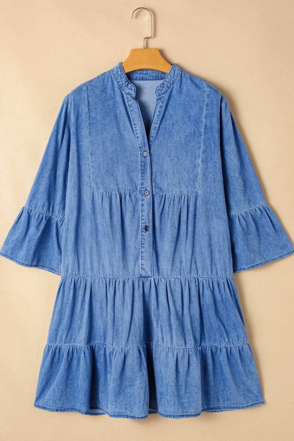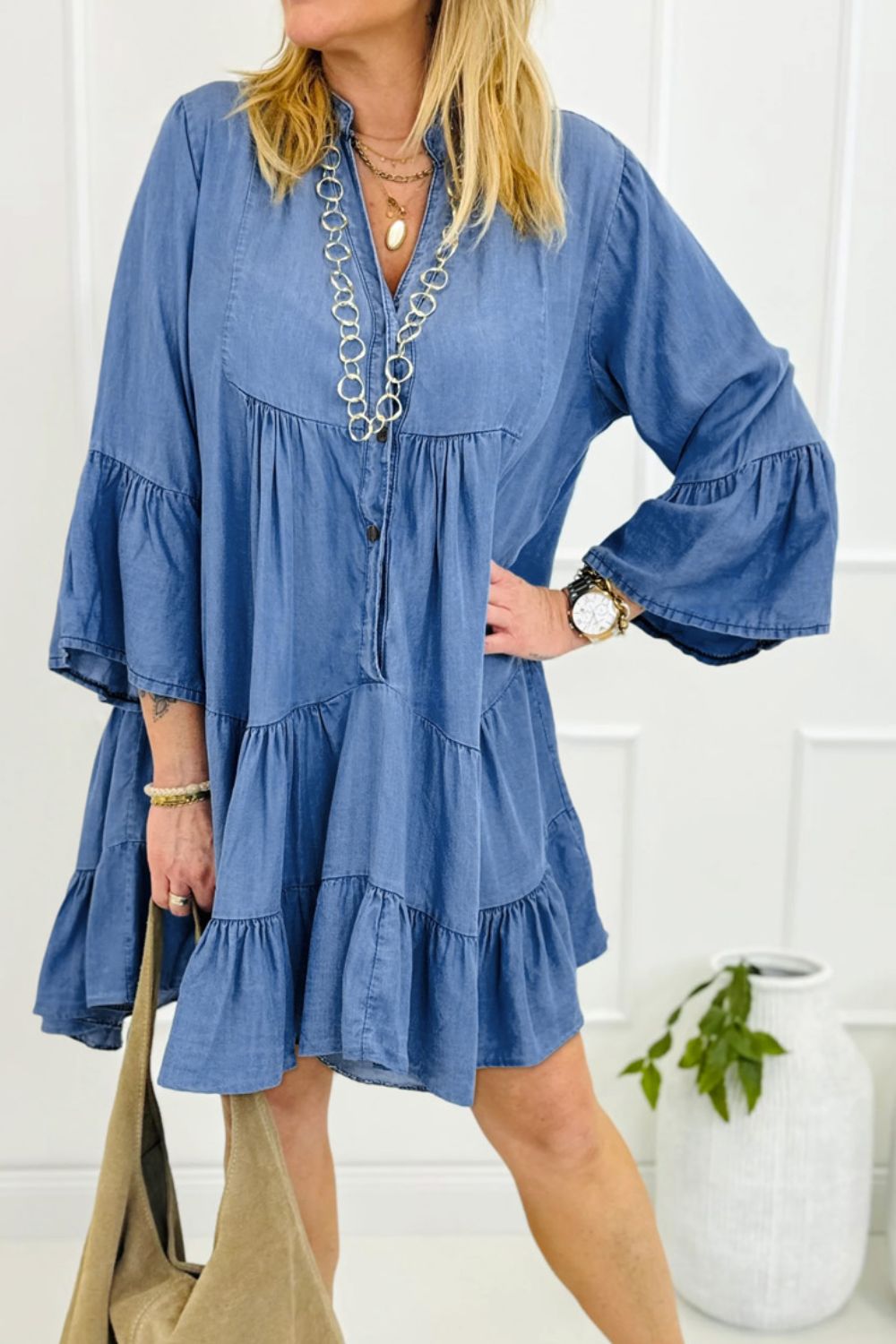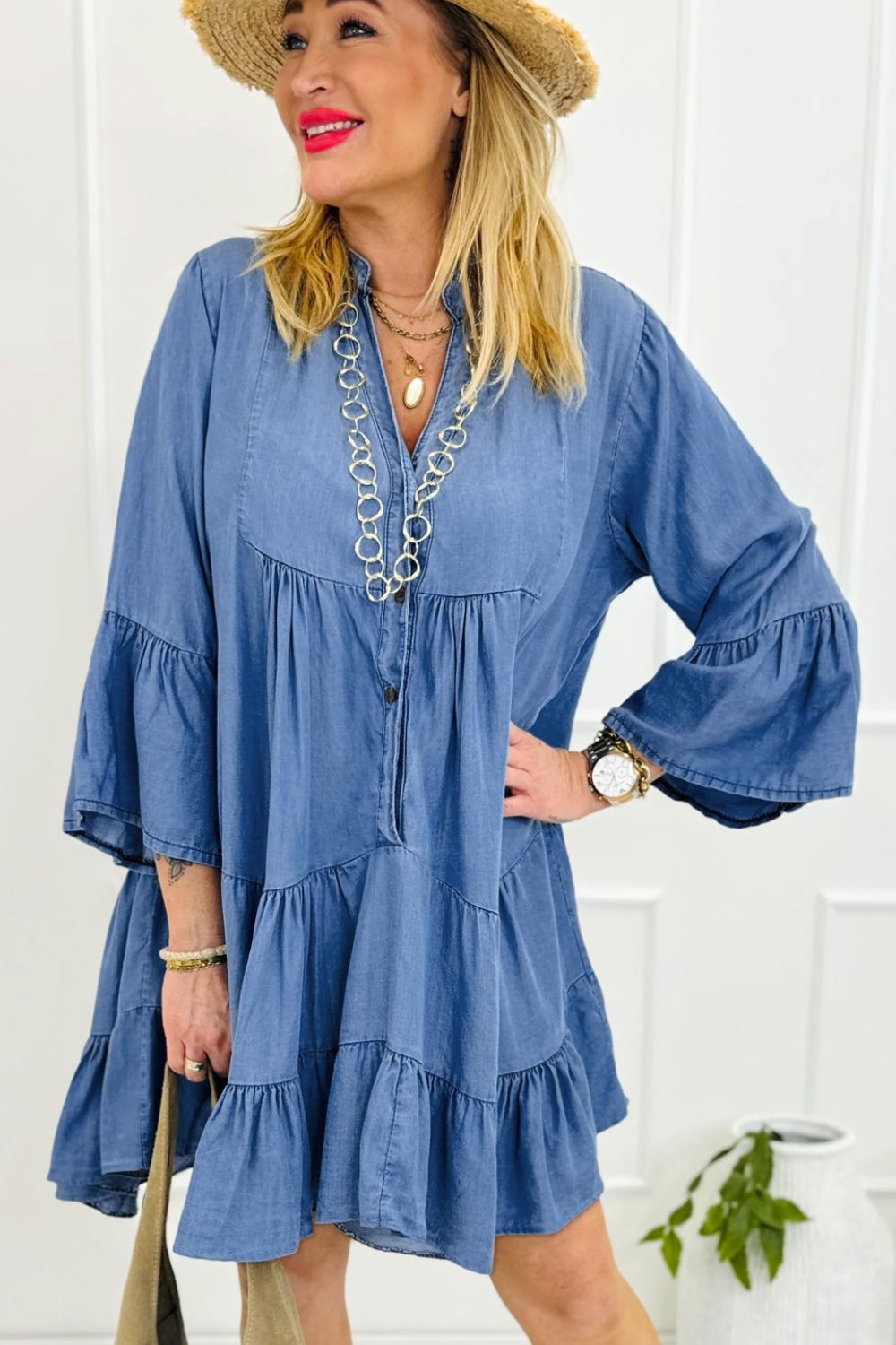 Introducing our versatile Three-Quarter Sleeve Denim Resort or Summer Dress. Made for women. this dress offers a classic style and comfortable fit with three-quarter sleeves and denim fabric. Perfect for summer lunches out with the girls. from resort vacations to summer picnics.