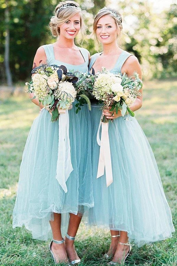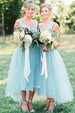 Tulle Beaded A-line Square Neck High-Low Simple Bridesmaid Dresses. MBD196