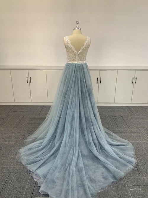 Tulle Embroidered Ombre Soft Lace V-neck Prom Dresses Formal Dresses.MP515