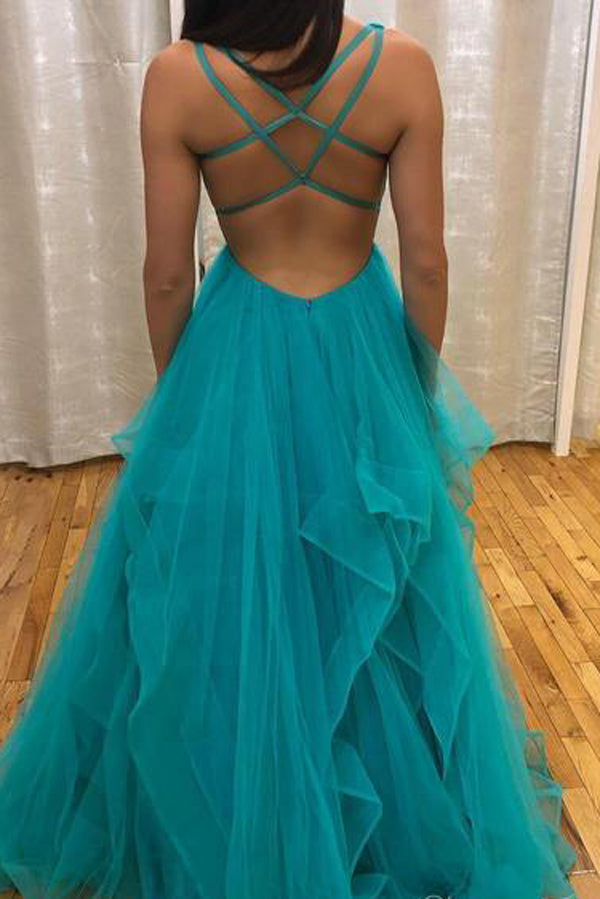 V-neck Simple Dusty Rose Long Prom Dresses with Straps and Ruffle Skirt.MP440