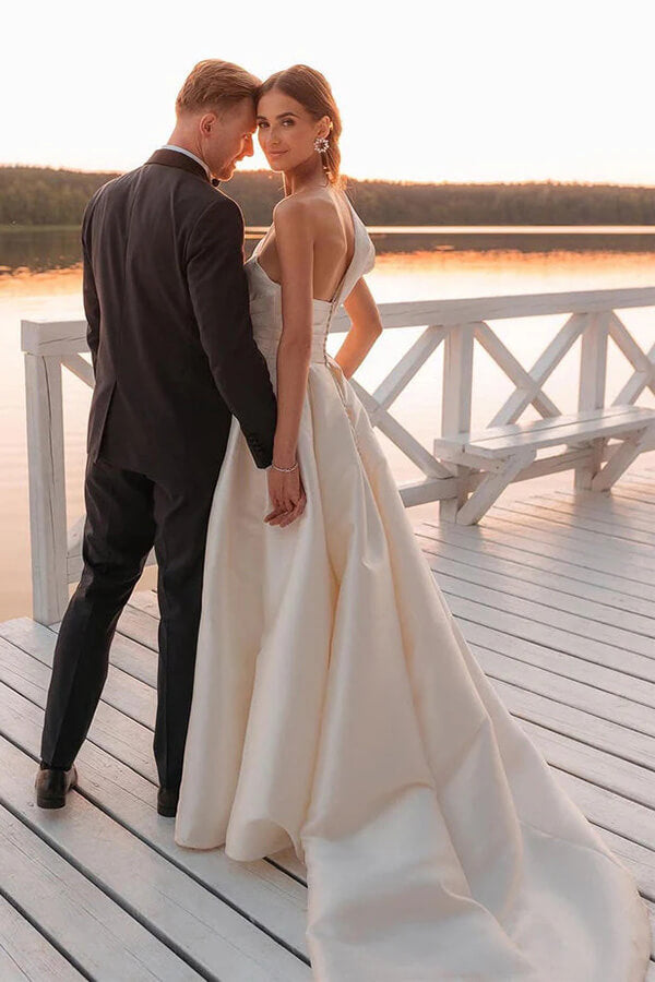 Vintage Satin One Shoulder Ball Gown Wedding Dresses With Train.
