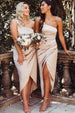 White Satin One Shoulder Bridesmaid Dresses. Wedding Party Dresses. MBD188