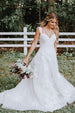 White Tulle Lace Appliqued A-line V-neck Wedding Dresses. Bridal Gown. MW675