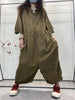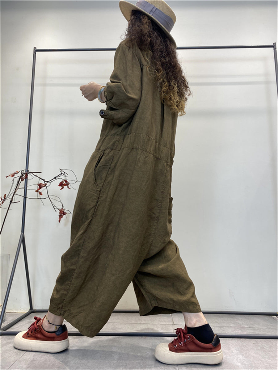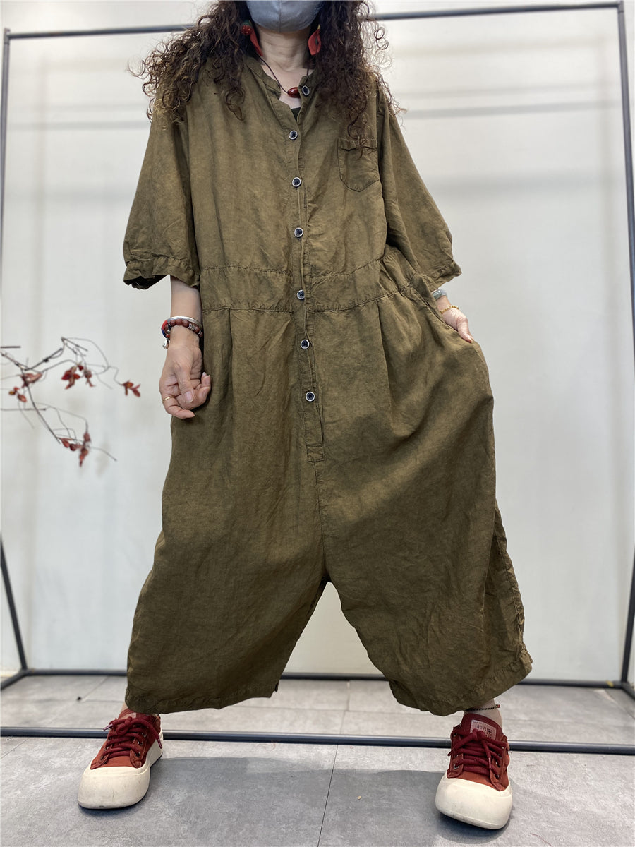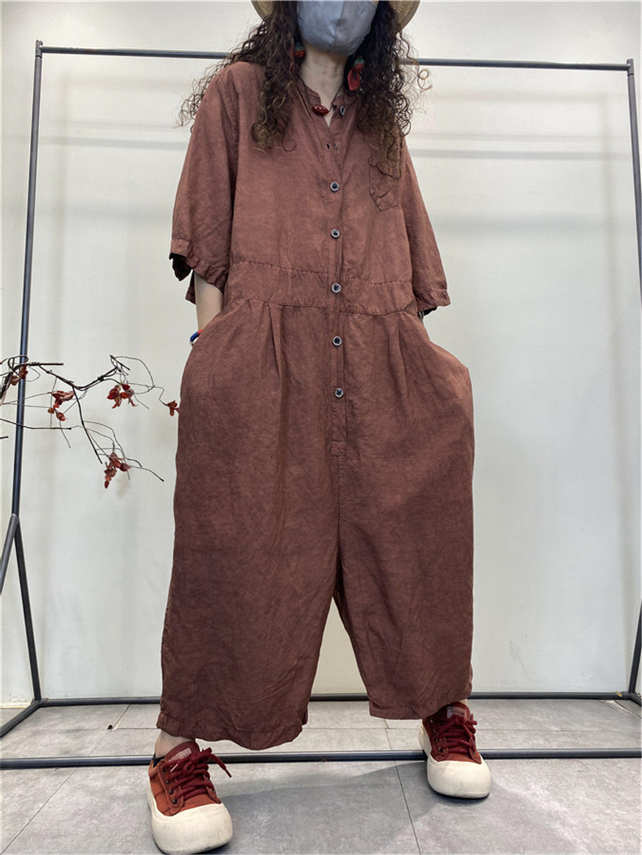 Women Summer Retro Solid Button Pocket Loose Jumpsuits