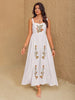 Elevate your beach style with this feminine maxi dress. The floral embroidery and sleeveless design add a touch of romance to your beach strolls. Stay cool and chic with this white beach maxi dress.
